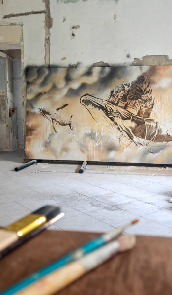 Aujourd’hui, je partage ma créativité entre tatouage, peinture et fresques murales. Mon travail s’inspire du pop-surréalisme, du street art, de l’esprit wabi-sabi et de tout ce qui raconte une histoire ou éveille une émotion : textures brutes, contrastes marqués, imperfections vibrantes. J’ai une approche intuitive et spontanée, où le dessin automatique occupe une place importante. Cela me permet de laisser émerger des formes ou idées inscrites dans l’instant présent, sans contrainte et dans un flux créatif naturel. J’aime m’amuser de ce qui surgit, explorer l’inconscient et capter l’énergie d’un mood, d’un mouvement en cours.